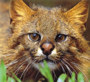 The head is relatively small compared to body size and is marked with white around its nose and eyes. The pampas cat is found in a range that covers most of western and central South America, from Equador and Chile across the Andes Mountains into Argentina and neighboring countries. The habitat of the cat is quite varied, and they are equally at home on the grassland plains, the dense equatorial forest or high altitude mountain scrub.